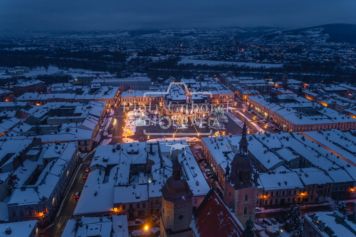Nowy Sącz oświetlony rynek