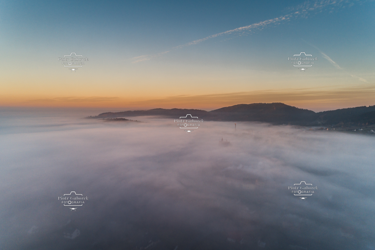 Gęsta mgła widziana z lotu ptaka