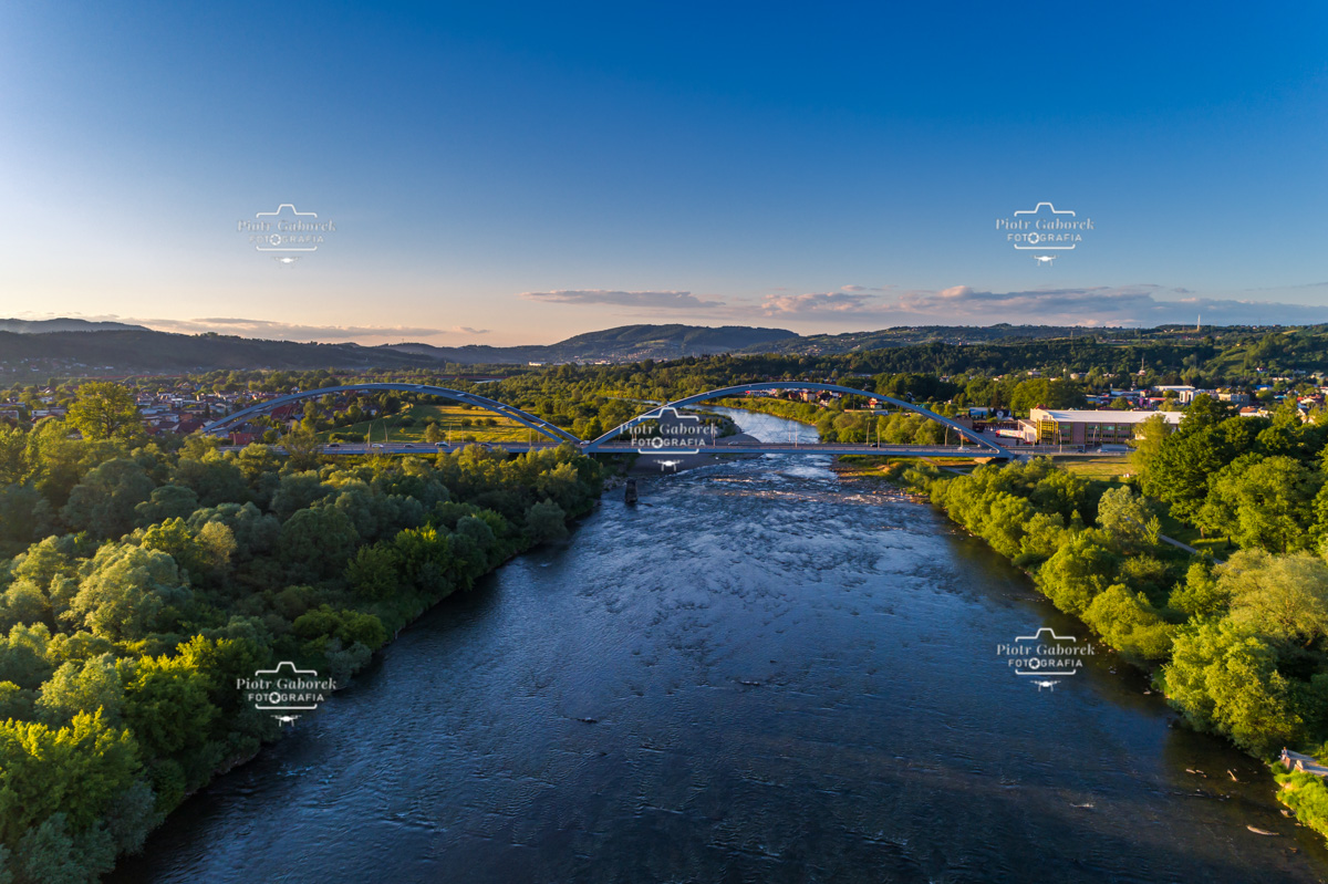 Nowy Sącz Most Józefa Piłsudskiego z lotu ptaka.