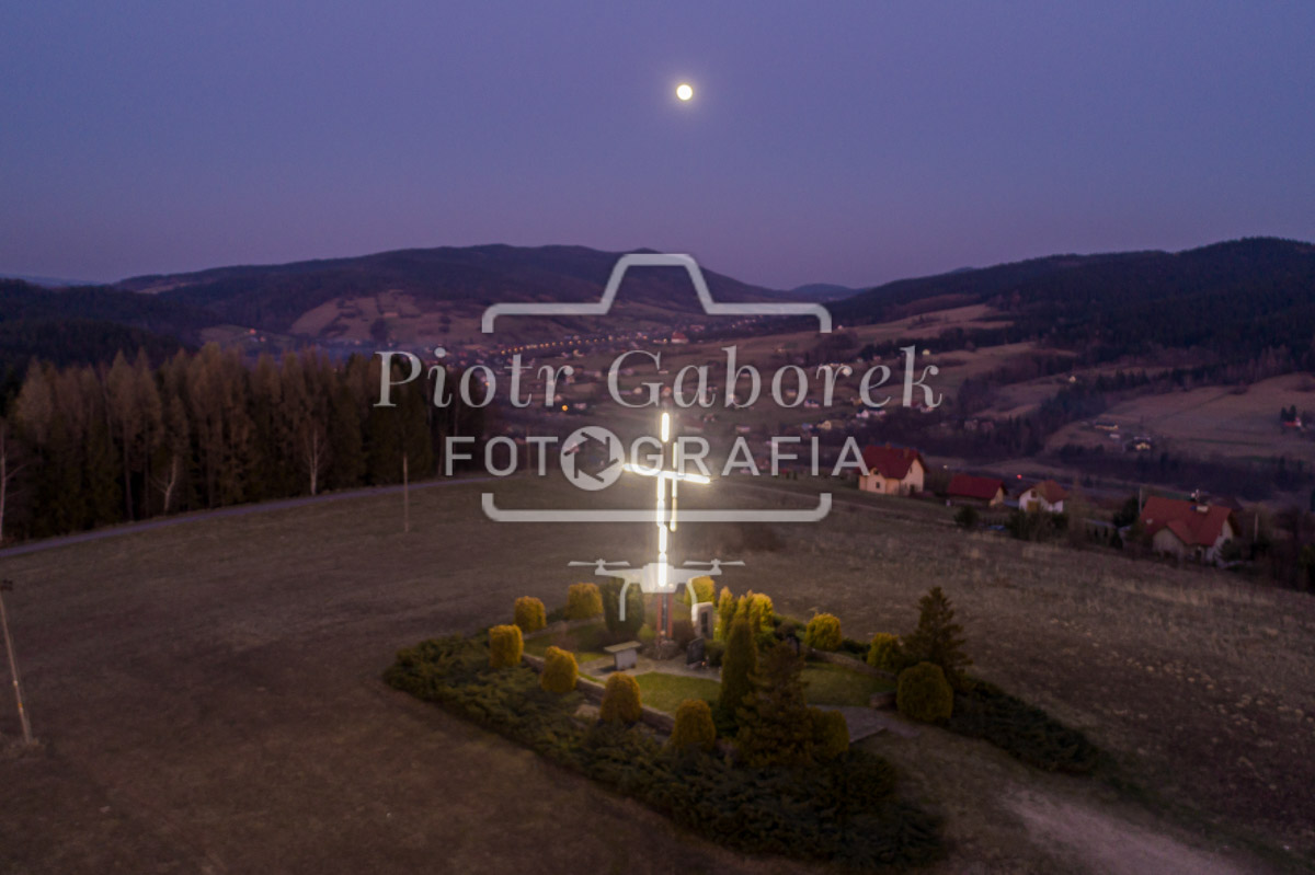 Mszalnica, Krzyż Milenijny o zachodzie słońca.