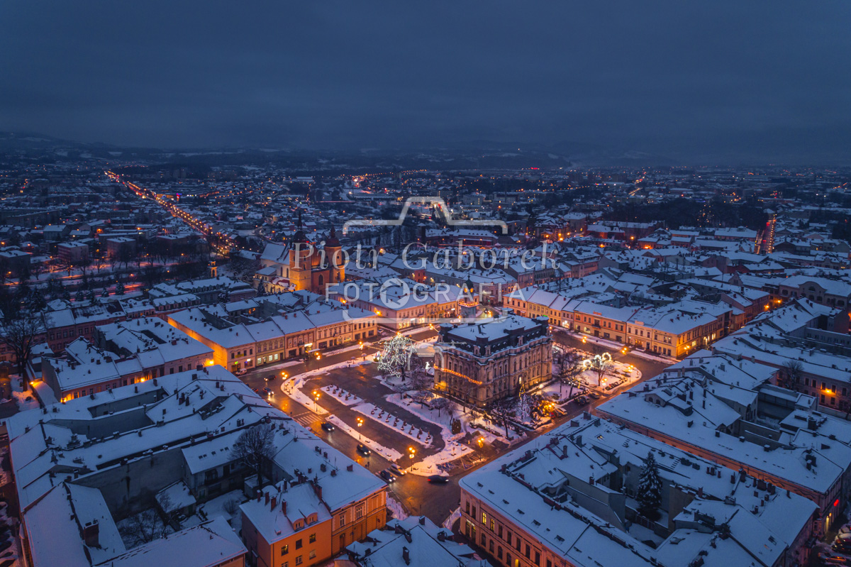 Nowy Sącz z lotu ptaka zimą