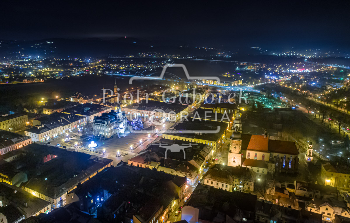 Nowy Sącz nocą, Ratusz i Bazylika św. Małgorzaty