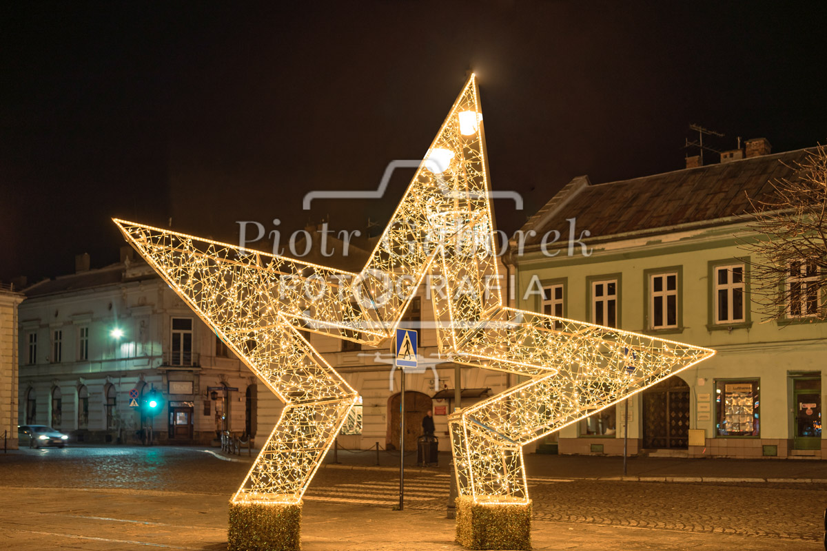 Nowy Sącz, świąteczna gwiazda na rynku.