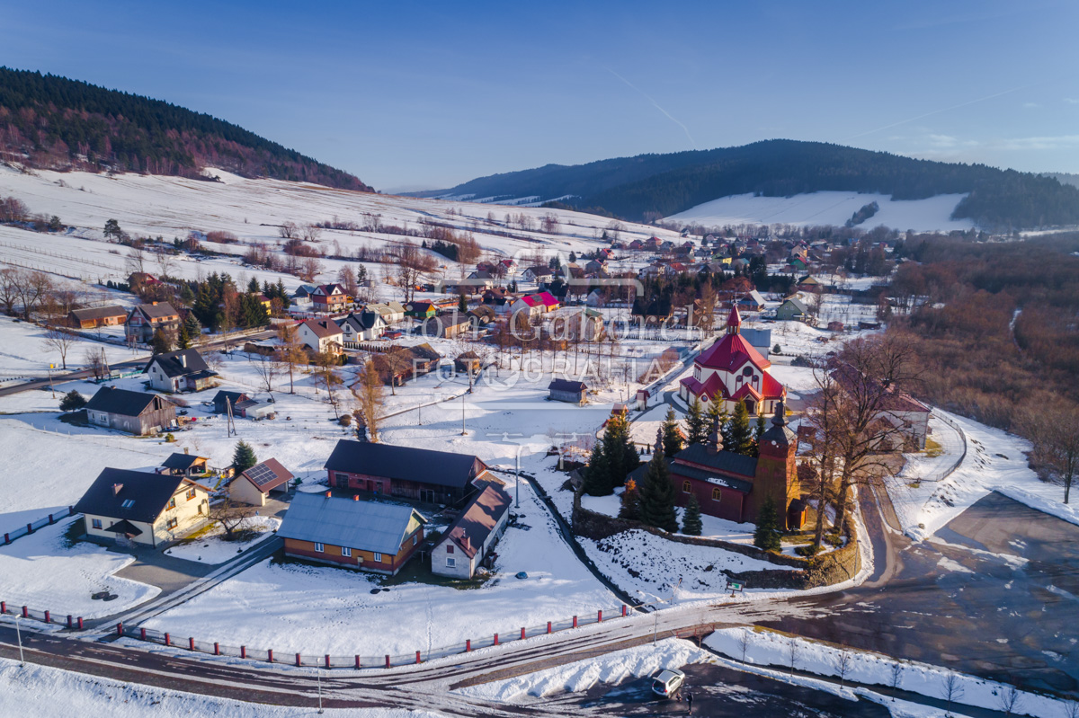 Parafia św. Andrzeja Boboli w Śnietnicy z lotu ptaka