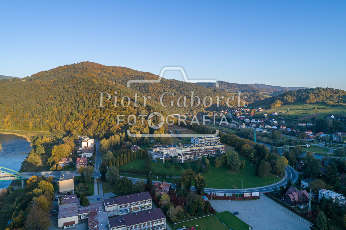 Piwniczna Zdrój, jesienny krajobraz z lotu ptaka.